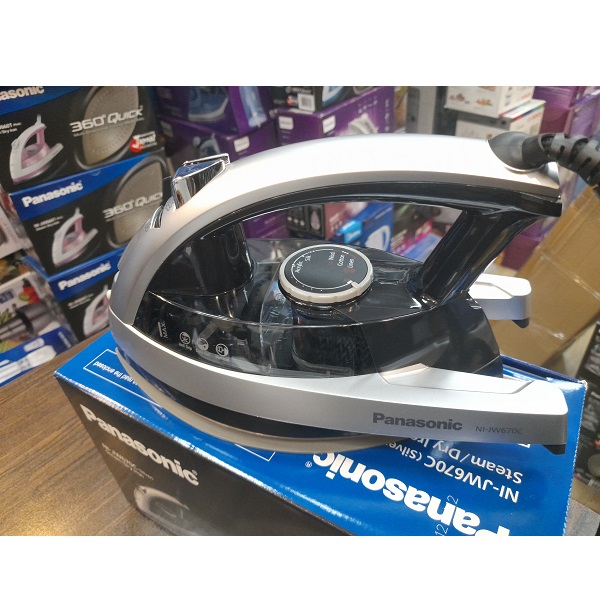 اتو بخار پاناسونیک مدل NI-JW670 از اتوهای سری معروف «JW» شرکت «پاناسونیک» است . که مانند تمام محصولات این کمپانی، کیفیت و عملکرد مطلوبی دارد . این اتو دارای کفی باکیفیت با روکش سرامیک است . که علاوه‌ بر منافذ خروج بخار و طراحی مسیرهای بخار، ویژگی خاص دیگری هم دارد و آن طراحی دو طرف منحنی آن است . به‌این‌ترتیب اتو کشی راحت‌ تر و سریع‌تر صورت می‌گیرد و در حرکت به عقب، دستگاه به دکمه یا جیب البسه گیر نمی‌کند . ظرفیت زیاد مخزن آب دستگاه، امکان ایجاد طولانی‌مدت بخار را به کاربر می‌دهد.