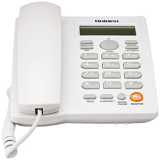 تلفن رومیزی UNIDEN AS7413 با نمایشگر شماره و اسپیکرفون یکطرفه (سفید / مشکی)