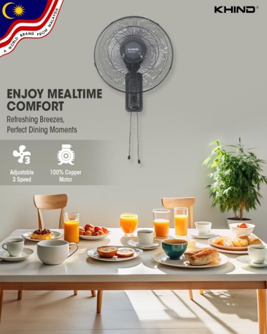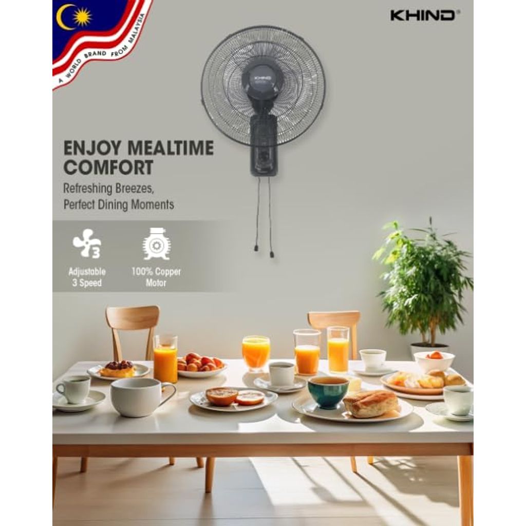 پنکه دیواری 16 اینچ KHIND مدل WF163T با کنترل دستی 3 سرعته، موتور 100% مسی