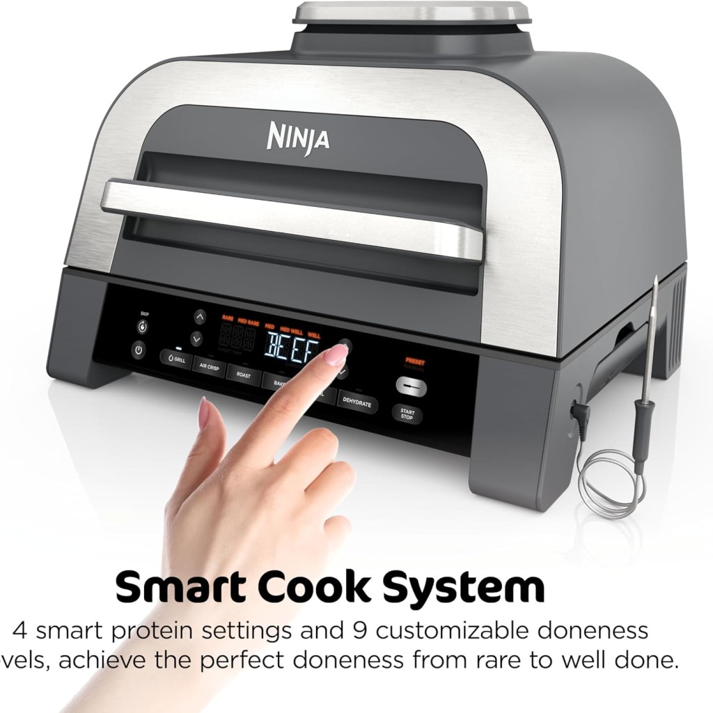 قلب این دستگاه، Smart Cook System بههمراه ترمومتر هوشمند Foodi Smart است که امکان پخت دقیق انواع پروتئینها را فراهم میکند. با ۴ تنظیم مخصوص پروتئین و ۹ سطح قابل تنظیم میزان پخت (از Rare تا Well-Done)، تنها با فشردن یک دکمه به نتیجهای کاملاً دقیق و یکنواخت میرسید؛ بدون حدسوگمان و بدون دردسر.