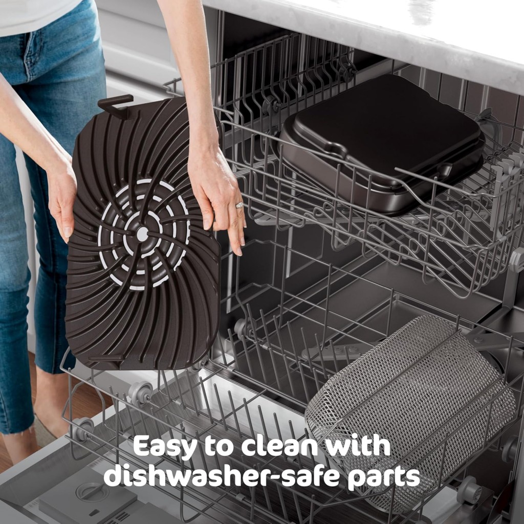 فناوری انحصاری Cyclonic Grilling Technology با گردش هوای داغ سیکلونی تا ۵۰۰ درجه فارنهایت بههمراه صفحه گریل داغ، غذا را بهطور یکنواخت میپزد و خطوط گریل واقعی و طعمی دودی و لذیذ ایجاد میکند؛ درست مثل گریل زغالی، اما در فضای آشپزخانه.