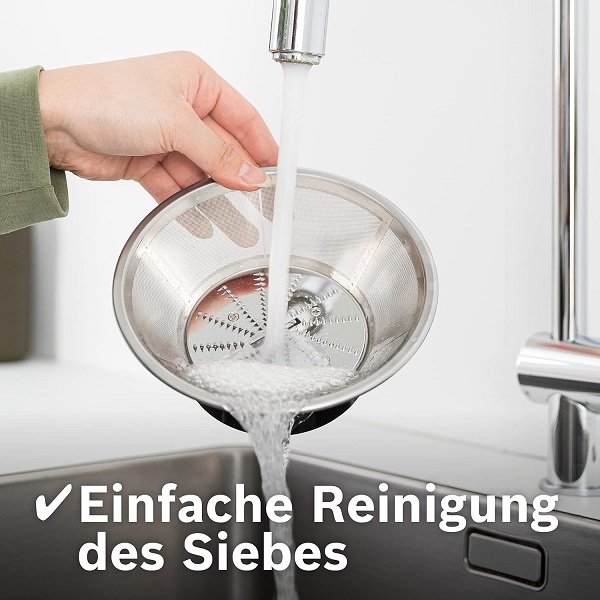 علاوه بر فیلتر آب میوه گیری که به راحتی قابل شست و شو است، میتوان لوازم جانبی آن را هم در ماشین ظرفشویی قرار داد. برای این دستگاه اقلام همراهی نظیر مخزن پلاستیکی آبمیوه که شفاف و دارای درجه بندی است و همچنین مخزن تفاله آبمیوه گیری در نظر گرفته شده که به راحتی میتوان آنها را پس از پر شدن از دستگاه جدا کرد و پس از وقفهای کوتاه آنها را خالی و برای ادامه فرآیند آبمیوه گیری روی دستگاه قرار داد. آبمیوهگیری بوش مدل «MES3500» دستگاهی تککاره است و میتوان توان آن را در دو سرعت تنظیم کرد. پایههای ضد لغزش زیر این دستگاه مانع از لرزش و جابجایی آن حین کار میشود. لوله خروجی دستگاه و پارچ آبمیوه آن طوری طراحی شدهاند تا آبمیوه مستقیم وارد پارچ شده و چکهای ایجاد نشود. لازم به ذکر است که ظرفیت پارچ این آب میوه گیری بوش حدود 3 تا 4 لیوان کوچک یا متوسط است.