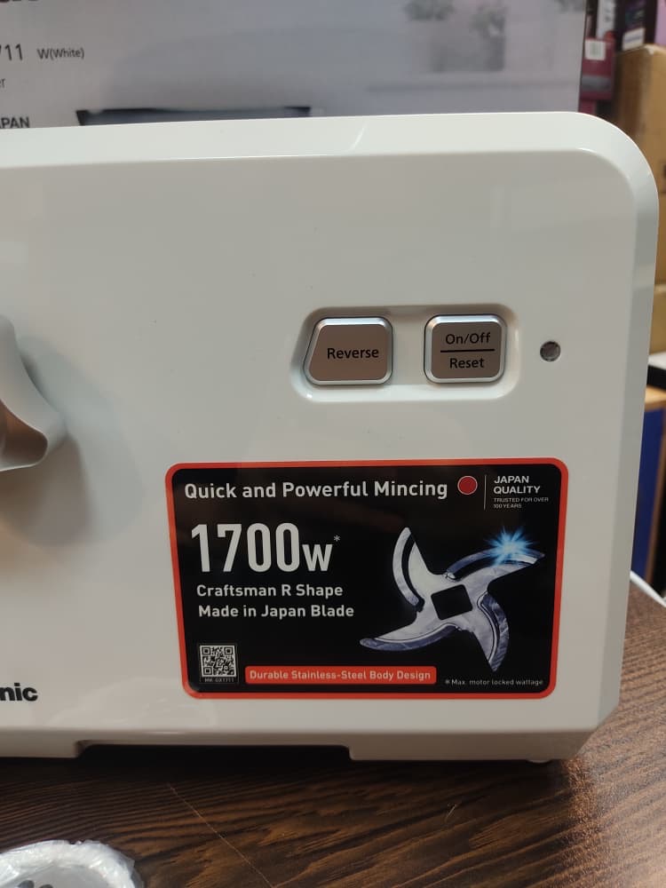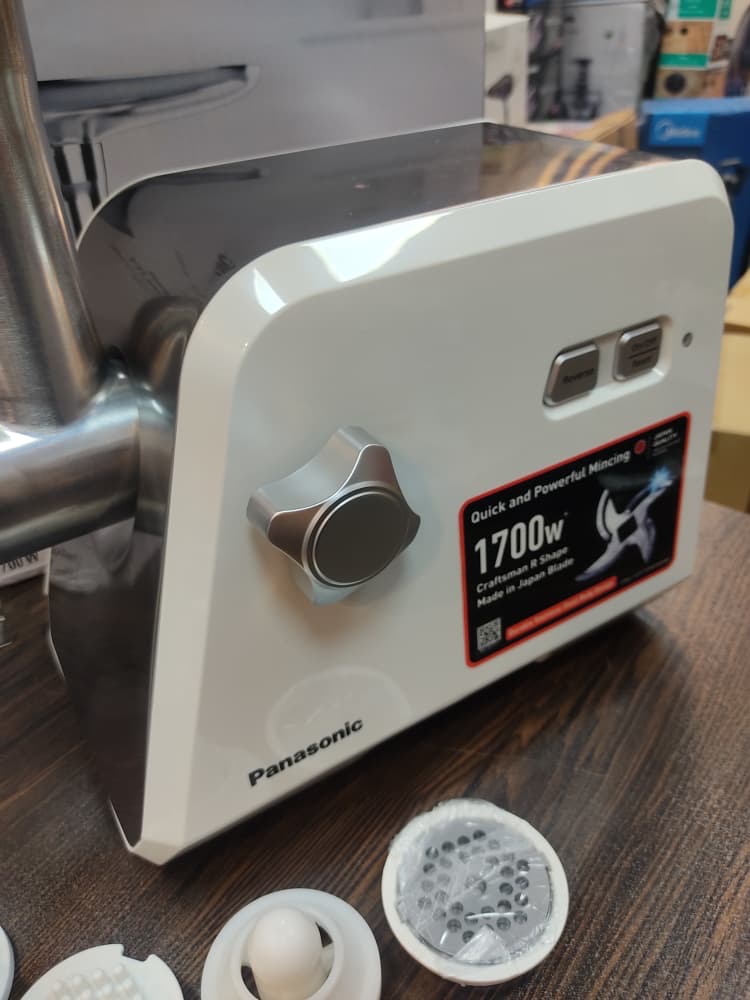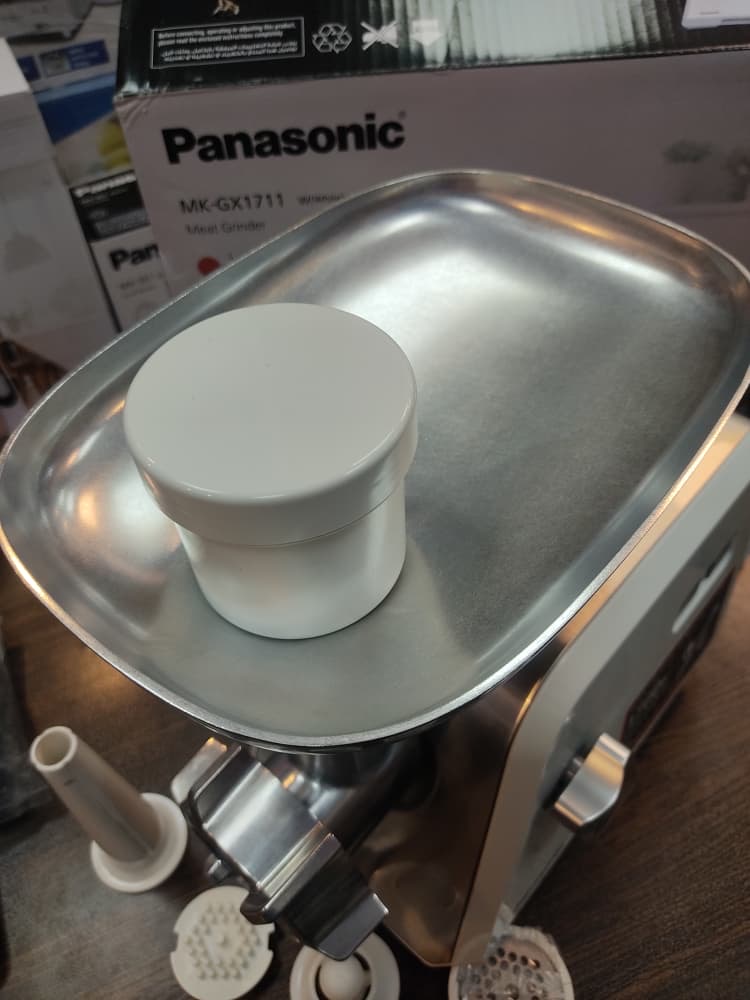 چرخ‌گوشت حرفه‌ای Panasonic MK-GX1711 با بهره‌گیری از فناوری موتور قدرتمند ۱۷۰۰ وات و تیغه‌های باکیفیت ساخت ژاپن، تجربه‌ای متفاوت از چرخ کردن گوشت را فراهم می‌کند. این مدل با ترکیب قدرت، دقت و طراحی لوکس، انتخابی ایده‌آل برای آشپزخانه‌های مدرن و حرفه‌ای است.