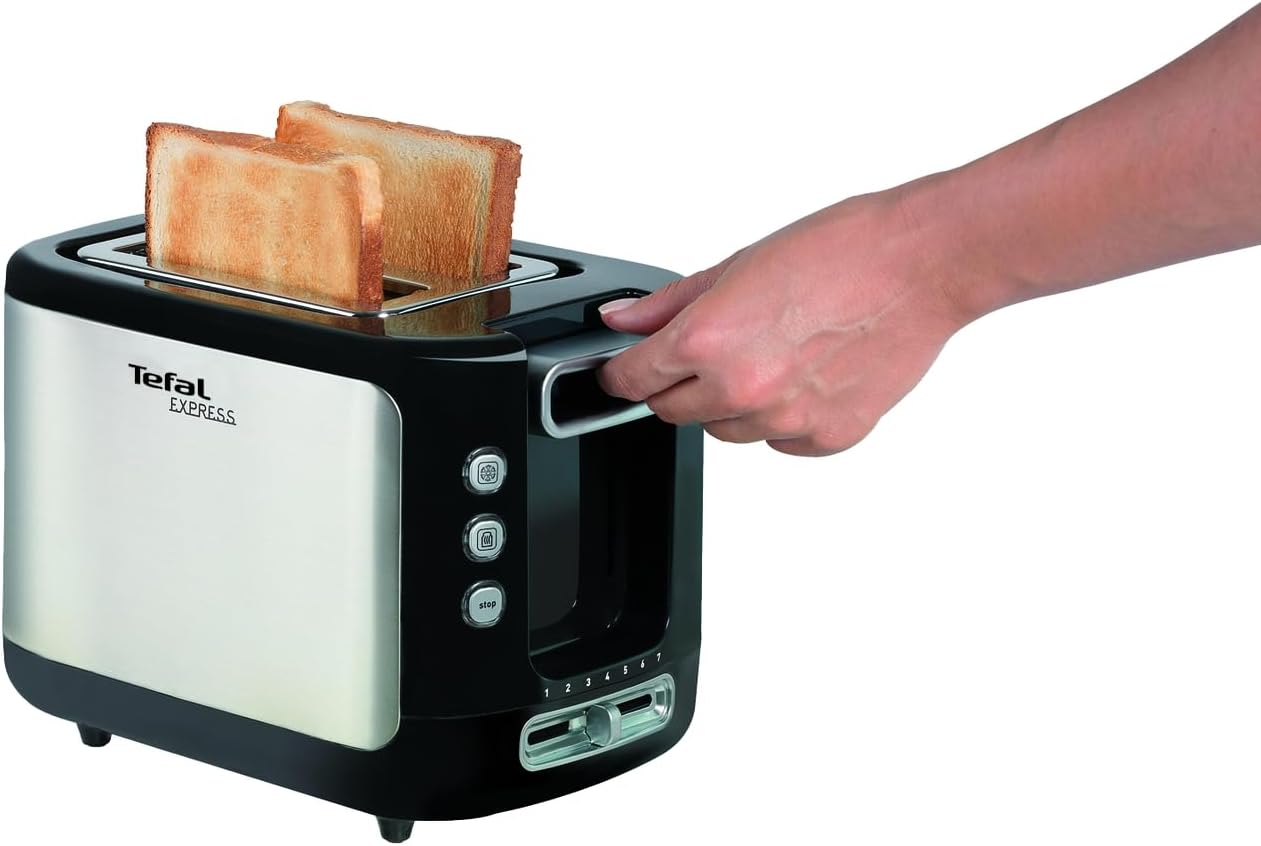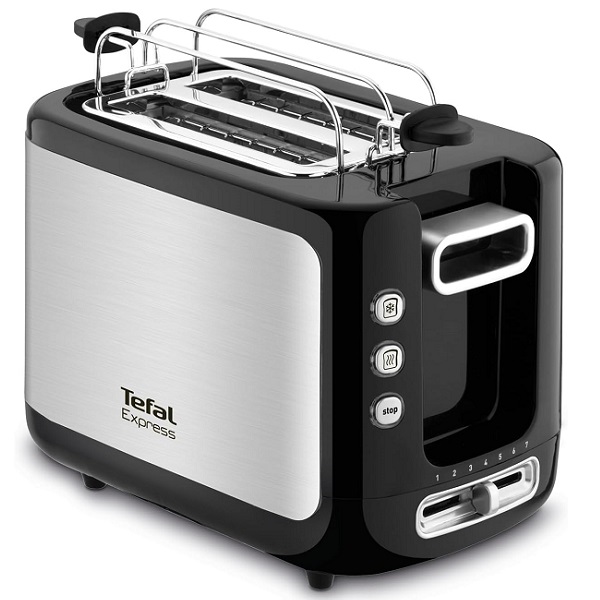 تفال اکسپرس TT3650 یک توستر جمع و جور با ظاهری لوکس و بدنه از جنس استیل ضد زنگ است. این توستر به شما امکان میدهد تا حداکثر دو برش نان را به طور همزمان آماده کنید. توستر تفال در رنگهای نقرهای و مشکی، با کنترل الکترونیکی، با توان 850 وات مجهز به ترموستات قابل تنظیم با 7 حالت و عملکرد یخزدایی، گرم کردن مجدد و توقف/خروج نان است.